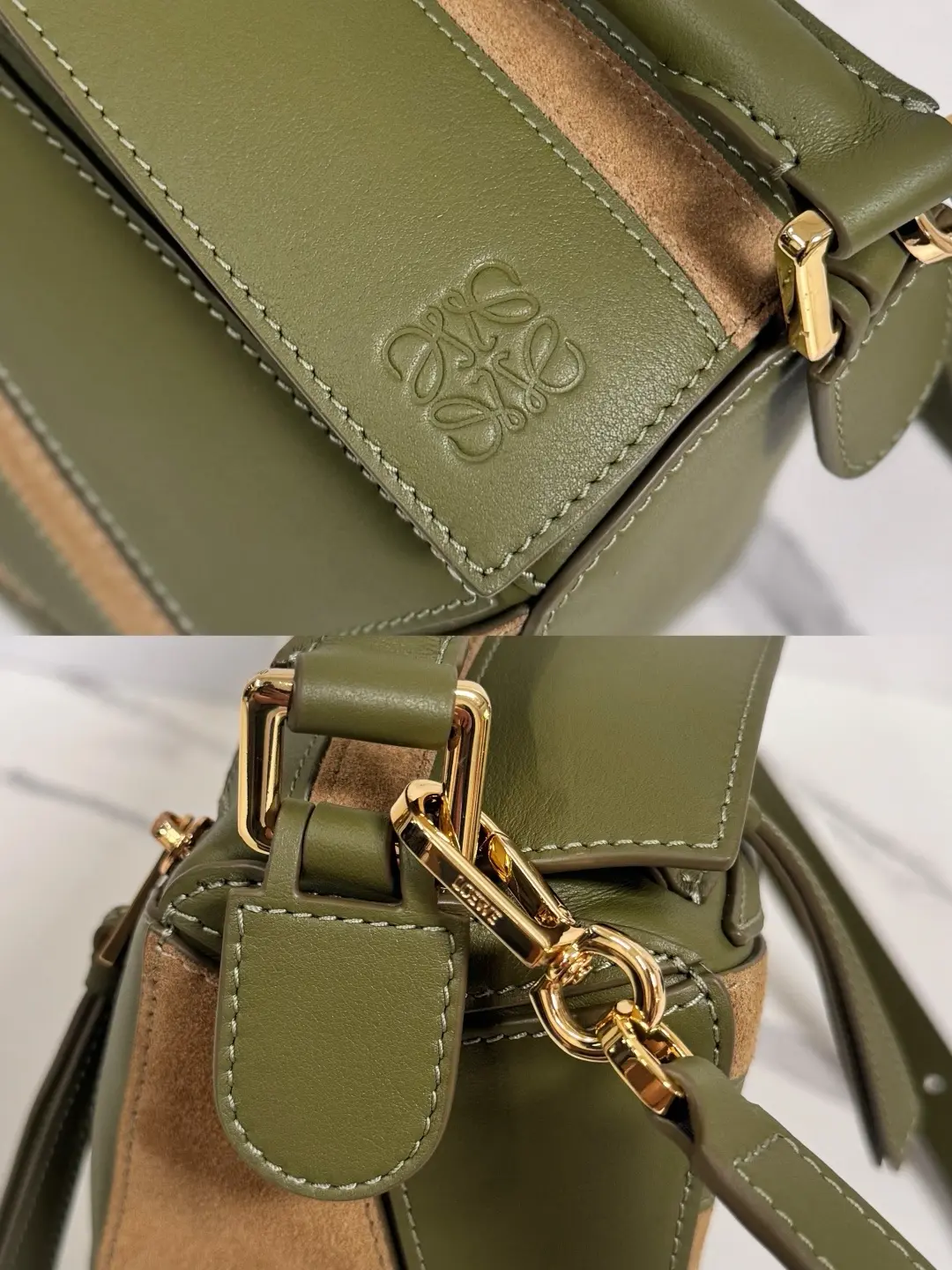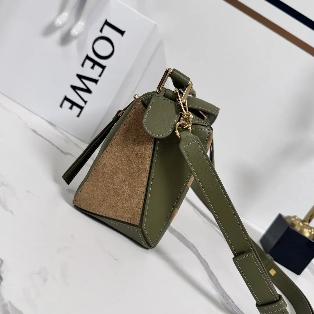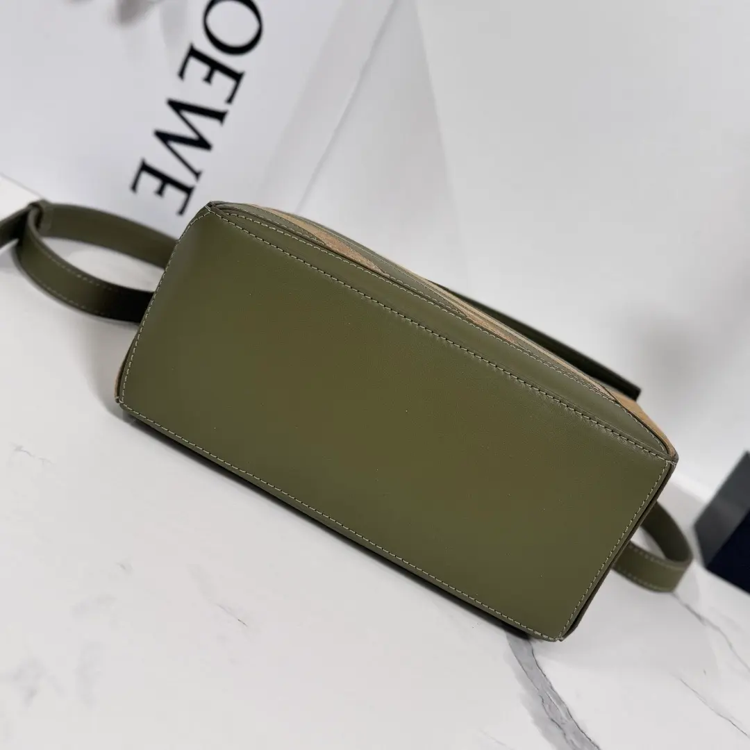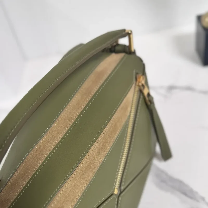 Cowhide leather Puzzle Edge Landscape handbag olive green size: 24*10.5*16CM