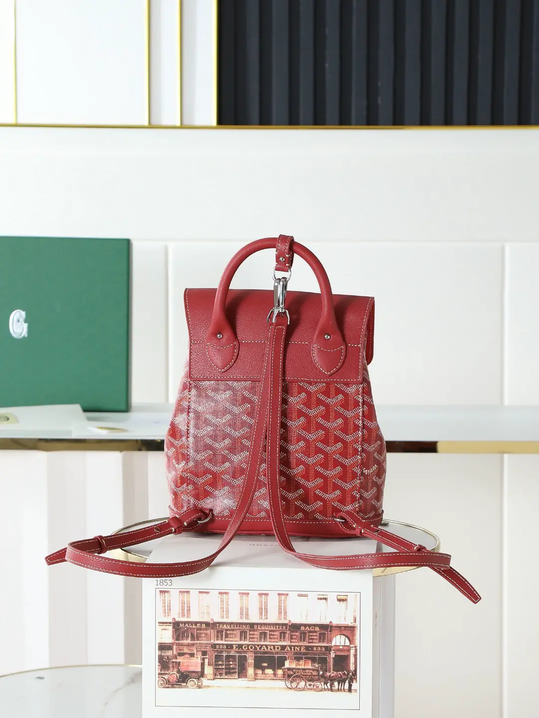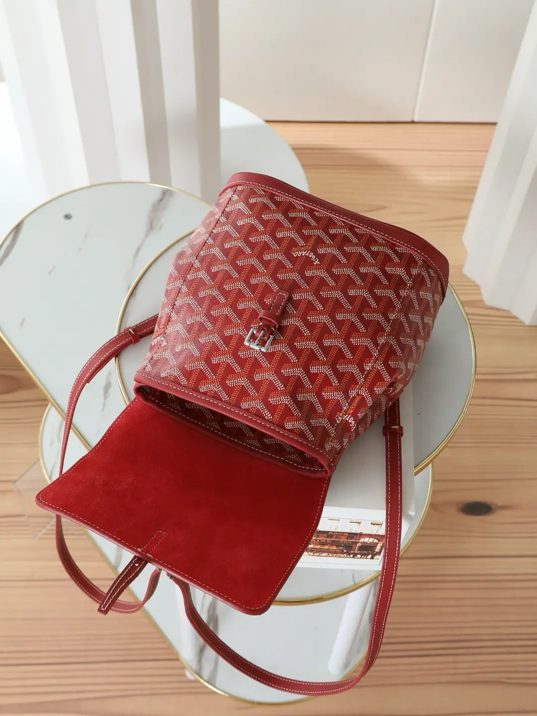 Goyard Aln Mini Backpack with Button Design, Red. Dimensions: 19*20*9 cm