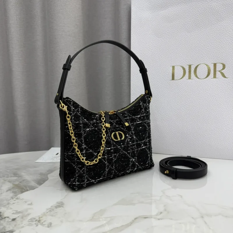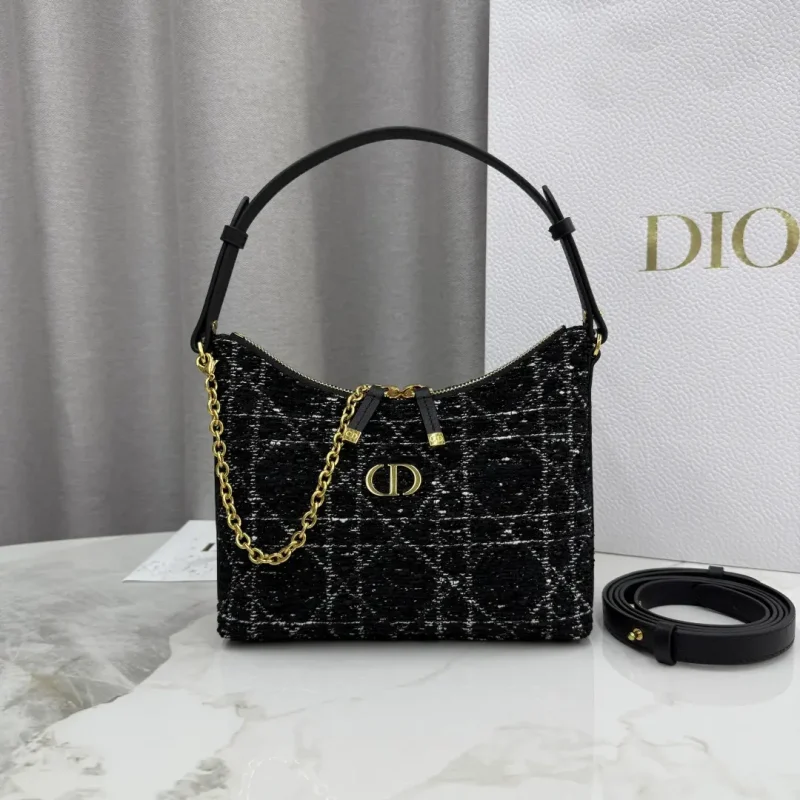 Miss Caro chain bag in black woven tweed