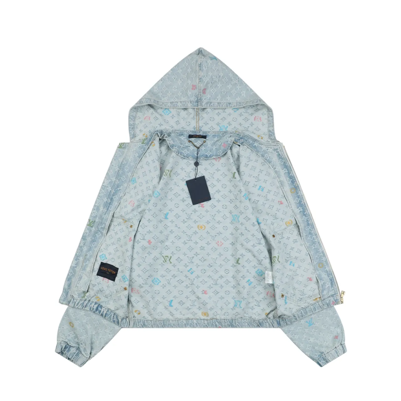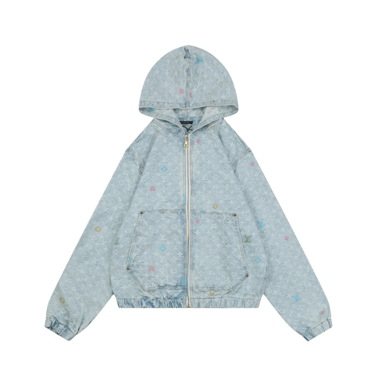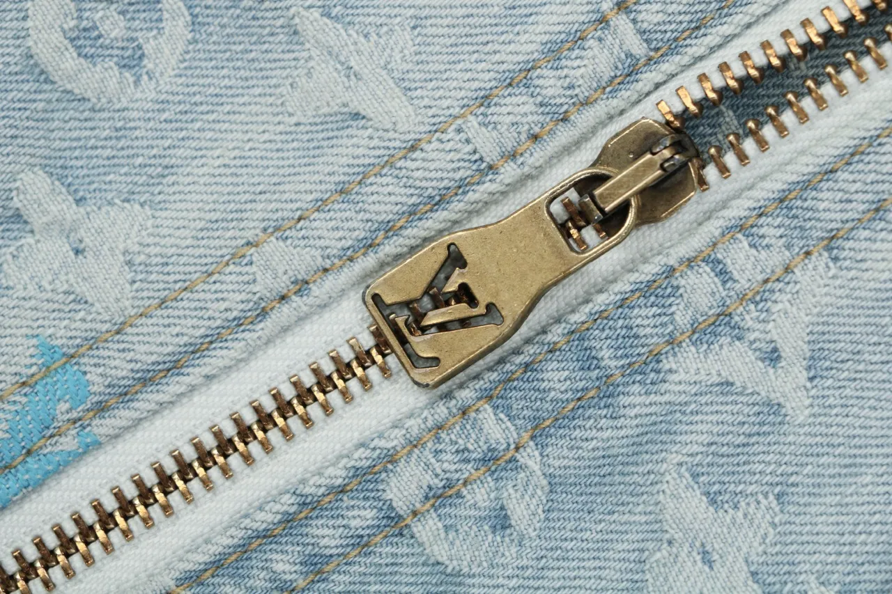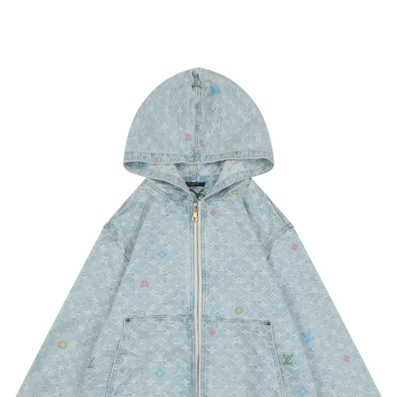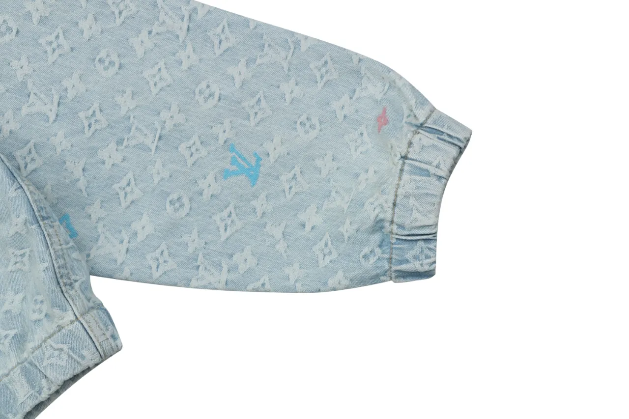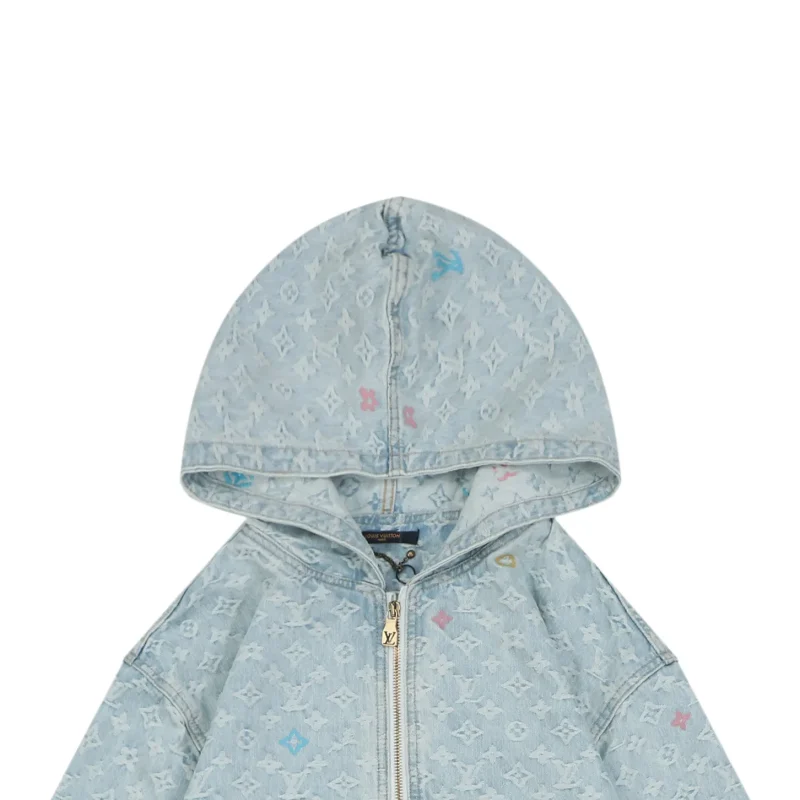 Multicolor Monogram Denim Zip Washed Streetwear Jacket