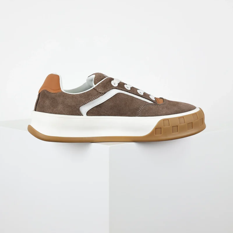 Skate Sneaker 2025 Classic lace-up shoe made of cowhide with round toe in low brown